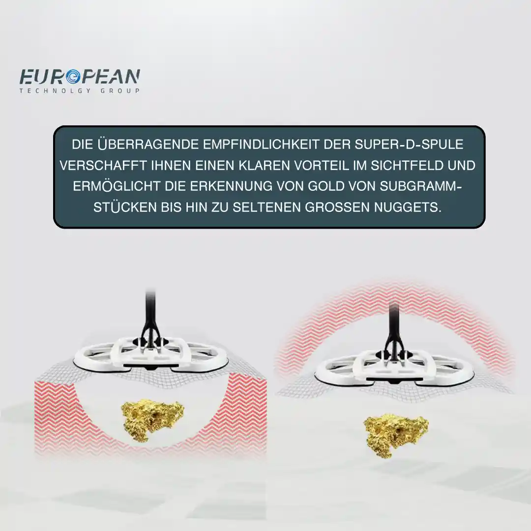 Sie können die Super-D-Suchscheibe mit dem GPZ 7000 verwenden, um im Gegensatz zur normalen Standard-Suchspule eine höhere Empfindlichkeit und eine größere Suchtiefe zu erzielen.