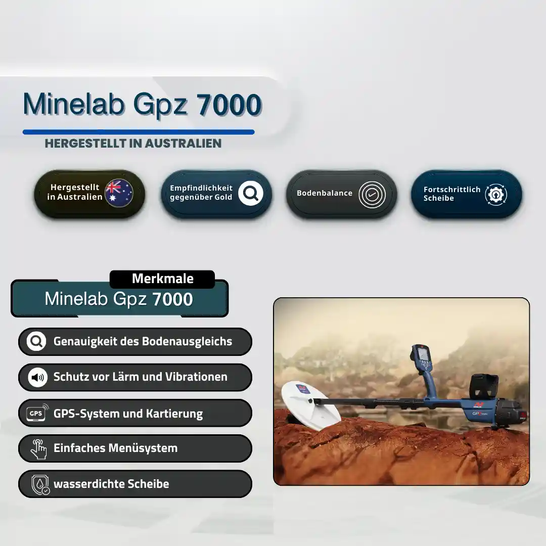 Der GPZ 7000 ist ein australisches Gerät und einer der besten und genauesten Golddetektoren der Welt. Der Preis des GPZ 7000 ist relativ hoch, aber es lohnt sich.