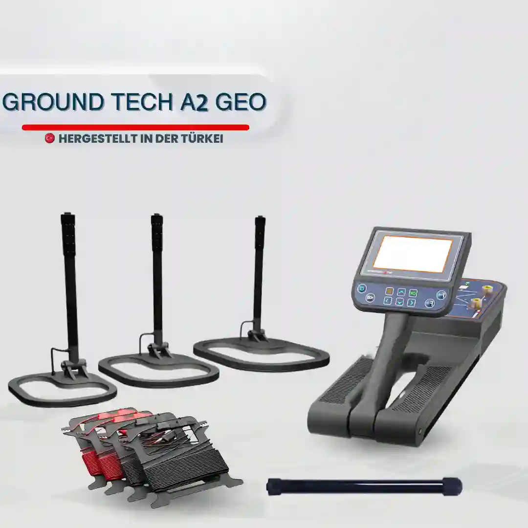 Neben den herausragenden Funktionen des A2-Modells bietet das A2-GEO-Modell eine entscheidende Erweiterung: ein integriertes Geo-Elektrik-System. Mit diesem System lassen sich Grundwasserquellen, unterirdische Tunnel, antike Gräber und Höhlen in deutlich größeren Tiefen erkennen. Es ermöglicht eine schnelle Vermessung über vier Linien und unterstützt sowohl manuelle als auch automatische Scanverfahren. Die gesammelten Daten können anschließend in der Groundtech Suite in 3D analysiert werden, um detaillierte Einblicke zu gewinnen.