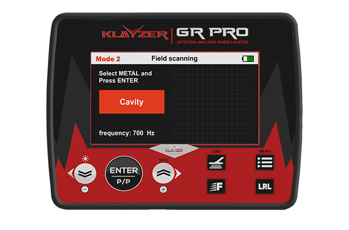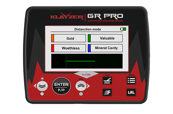 | Unterscheidung zwischen Metallen und Räumen | Der Klayzer Gr Pro kann zwischen Gold, Edelmetallen, Hohlräumen, Eisen und anderen Metallen unterscheiden. |